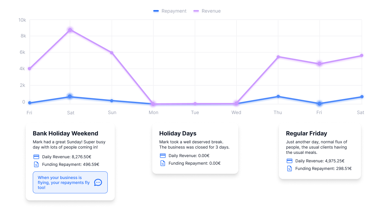 Our pay-as-you-earn principle means repaying remains affordable and unnecessary pressure is avoided. You simply repay a percentage of your daily card income, not a chunky fixed monthly repayment that can put your business under pressure.